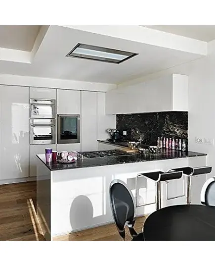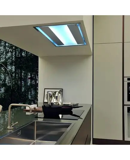 Вытяжка Falmec Design+ NUVOLA soffitto 90 inox встраивается в потолок. Это очень удобно, когда плита стоит не у стены, а в центре помещения. Корпус, изготовлен из нержавеющей стали. Передняя панель украшена декоративным элементом из высокосортного прозрачного закаленного стекла. Оно легко переносит перепады температур и не подвержено воздействию солнечных лучей. Неоновое освещение будет незаменимо в темное время суток. Электронное управление интуитивно понятно и удобно в использовании. Пульт дистанционного управления входит в базовую комплектацию.