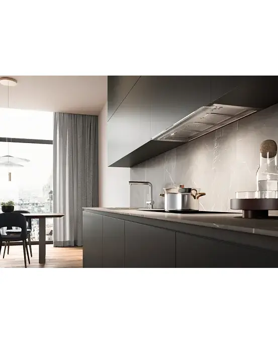 Дизайн: Вытяжка Falmec VIRGOLA NRS 120 выполнена в цвете «Нержавеющая сталь». Модель практически полностью скрывается за кухонным фасадом, что позволяет вписать ее в любой интерьер.
